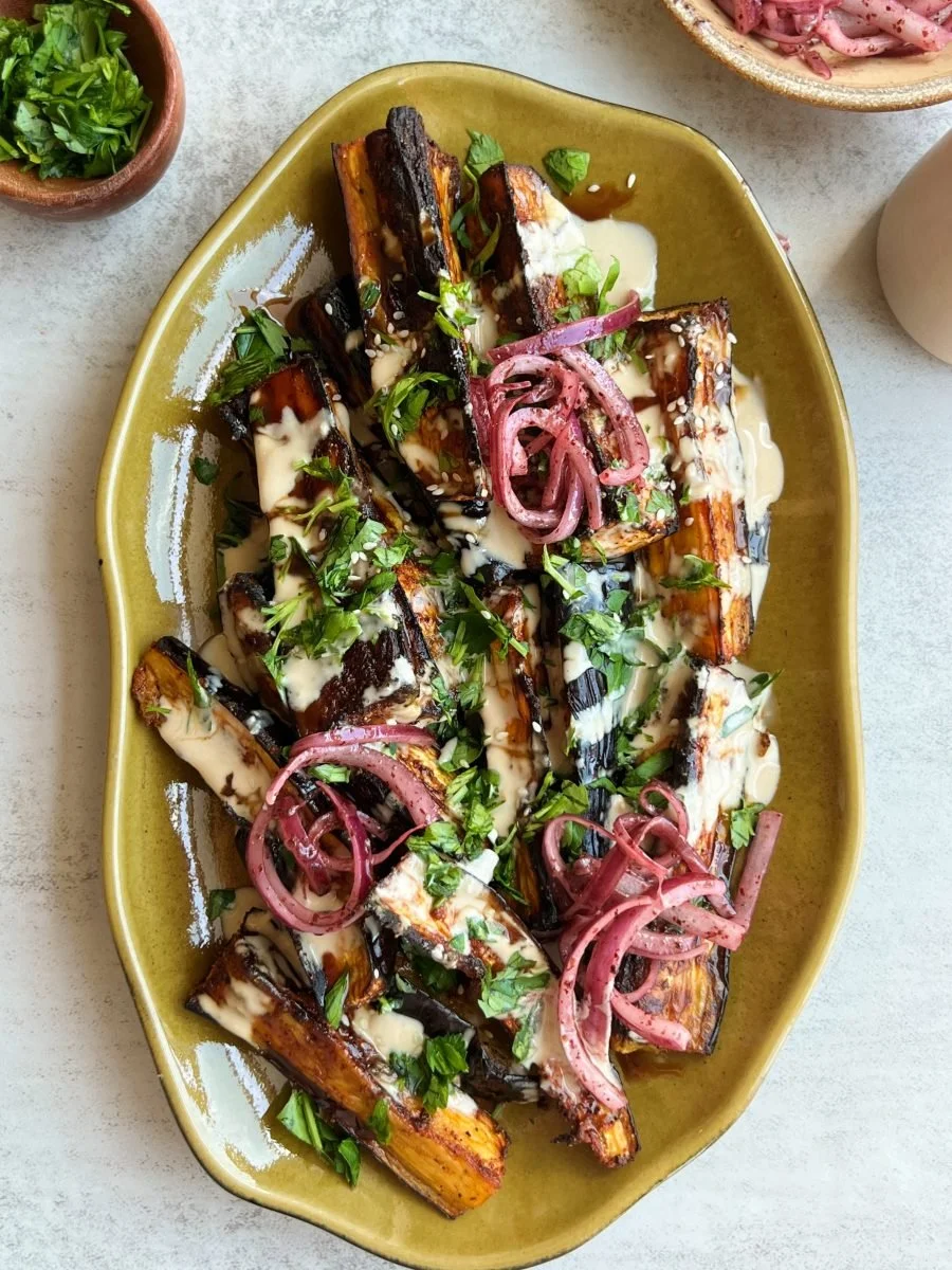 Our eggplant crop is thriving this season, and there are so many ways you can enjoy this versatile veggie! Grilled, roasted, layered into sandwiches or pasta, tossed into salads, or blended into creamy baba ghanoush.