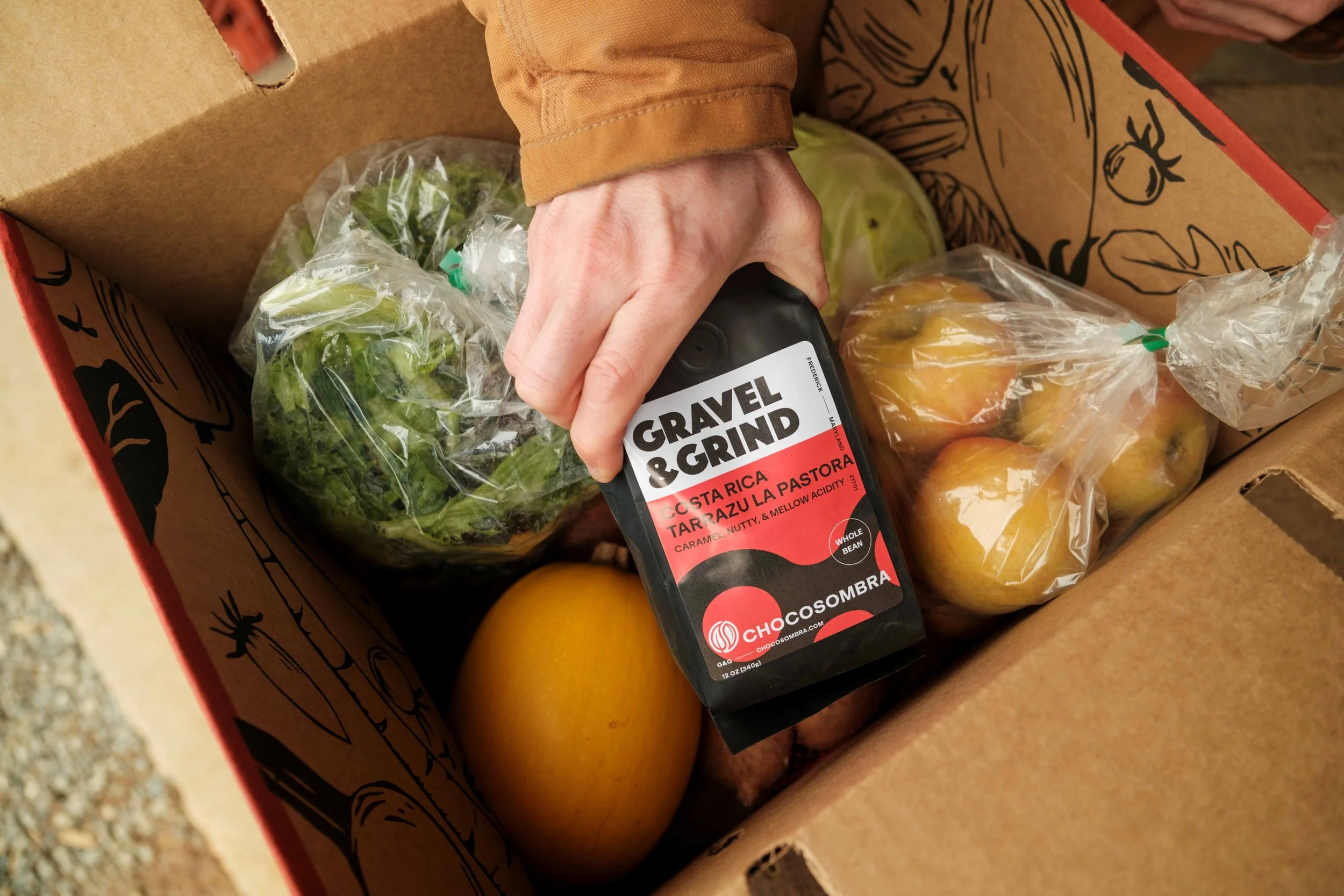 We’re so excited to announce our new partnership with Gravel & Grind to bring locally roasted coffee to your farm boxes!
