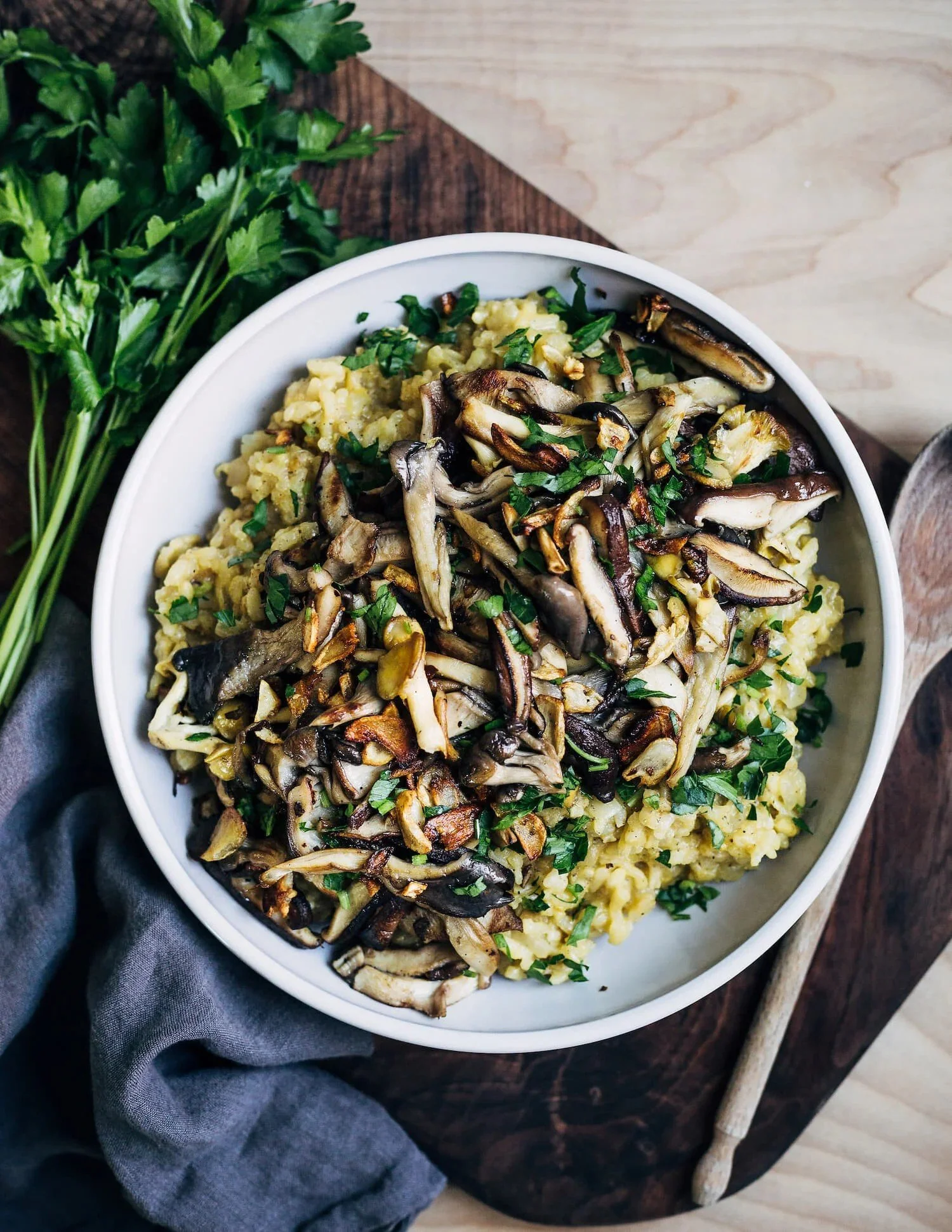 Vegan Risotto with Toasted Garlic and Mushrooms