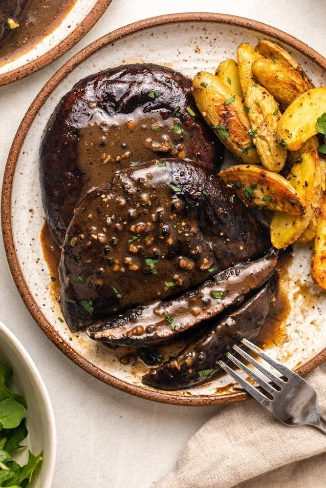 Portobello Mushroom Steaks with Peppercorn Sauce